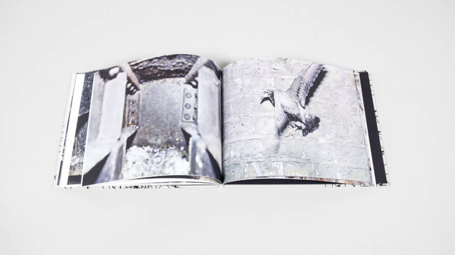 It’s this inversion of the anthropocentric view that makes Gill’s images so compelling. That, and another revelation – for fluffed-up and blinking in the dust and the grime and the rust and rime, we see those mythical beings: the young pigeons. I suspect it’s because we’ve entered this otherworldly realm that we find these juveniles to be arousing not of pity, but a grudging respect. Far from being scroungers or undeserving poor, these doughty birds survive and even thrive despite barbs and more barbs of outrageous human fortune. They are, like the urban foxes, the economic migrants of the animal world – forced into the cities to scratch a living as best they may – and before we condemn them, we would do well to ask ourselves this question: would we do as well were the tables to be turned?’ – Will Self