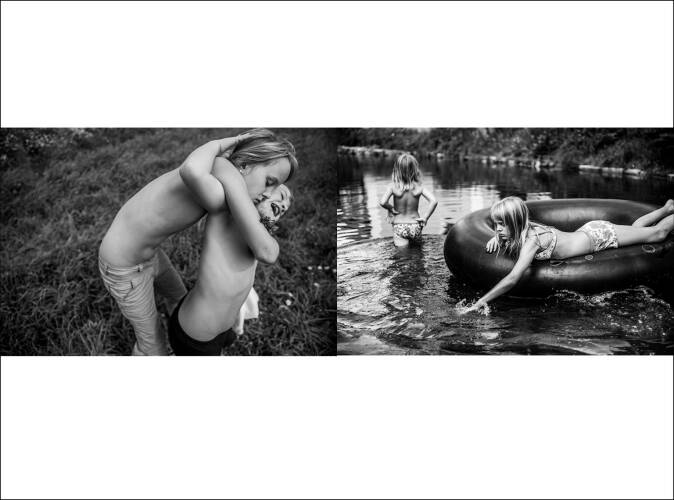 She ended up in Merkenbrechts, a small village of 170 inhabitants, where she met Hannah and Alena, two sisters who spend much of their time together in a carefree life of swimming, playing outdoors, and engrossed in games around the house. Carla started photographing them in powerful black and white, and has continued to do so, along with their families, friends and surroundings.