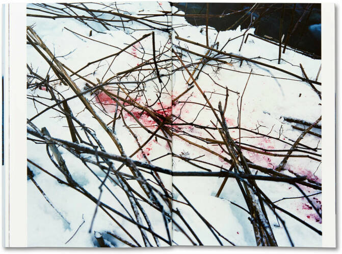 In this dark and beautiful book, Takashi Homma traces the blood trails of deers killed in Shiretoko National Park on the Japanese island of Hokkaido. Like ritualistic stains or calligraphic compositions, the photographs, which Homma made in the winters of 2009 to 2018, are at once abstract and symbolic. Considered by some to be sacred, deers in Japan have controversially faced culls due to growing populations, which upset agricultural communities struggling to protect their crops. To aid their mission in reducing numbers, the government encourages local hunters to take matters into their own hands. Homma photographs the effects – the red vestiges of wild life in the snow.