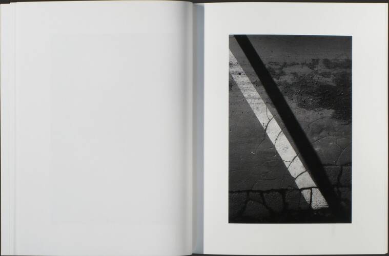 The fifth folder is called “Asphalt” and contains no more than 14 b&w images. The title already reveals it – the view is focused downward, the display details are narrow, the motives two-dimensional. Where the space in these images comes from is a mystery. I enter, follow the signs and traces and thereby have a lot more than 14 images in mind.