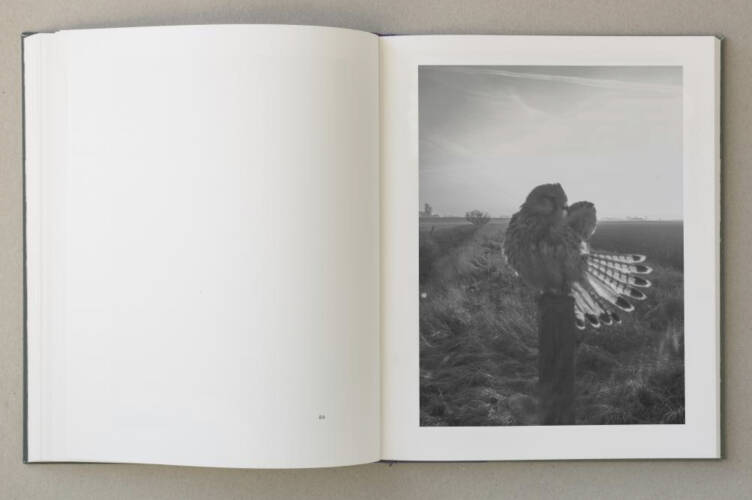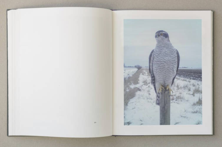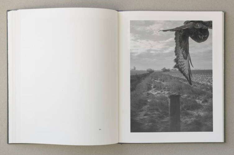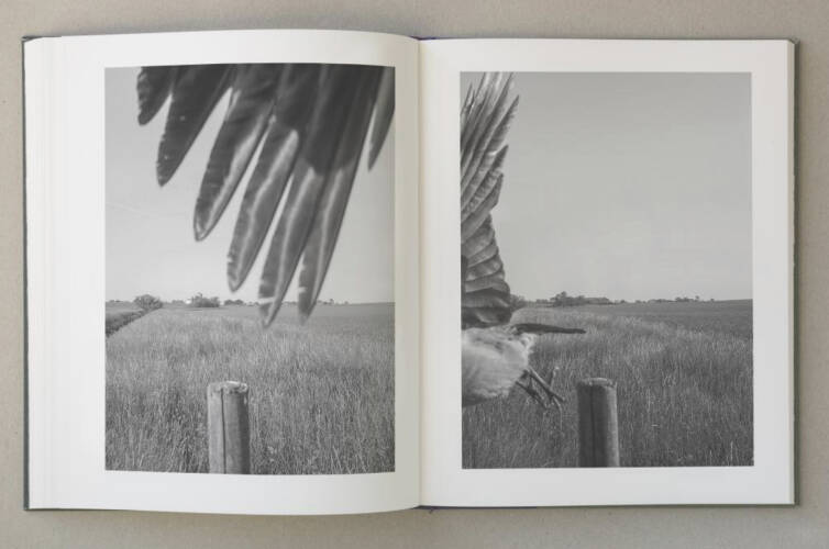 A pillar knocked into the ground next to a stream in a flat, open landscape, trees and houses visible in the distance, beneath a vast sky. That is the backdrop to all of Stephen Gill´s photographs in this book. We see the same landscape in spring and summer, in autumn and winter, we see it in sunshine and rain, in snow and wind. Yet there is not the slightest monotony about these pictures, for in almost every one there is a bird, and each of these birds opens up a unique moment in time. We see something that has never happened before and will never happen again. That it takes place in the midst of a landscape characterised by repetition, in which time is cyclical, sets up a keen existential dynamic: on the one hand, everything has happened before, there’s nothing new under the sun; on the other, every moment is unique and carries the hallmark of the miracle: what happens happens only once and never again.