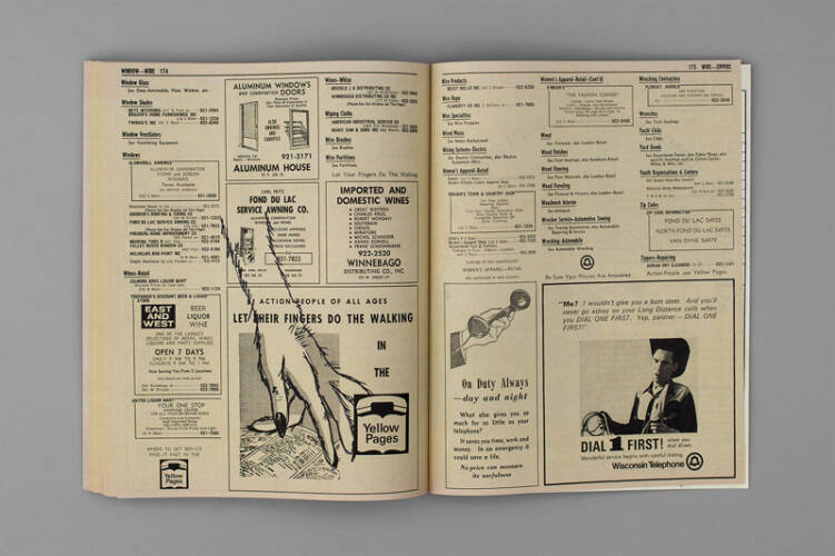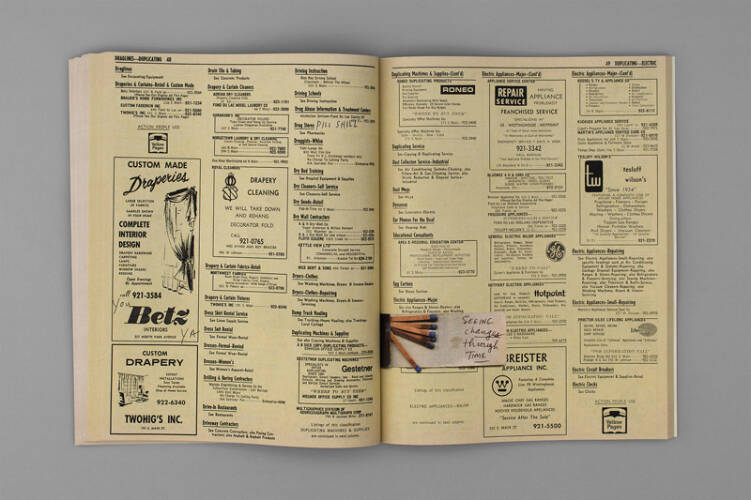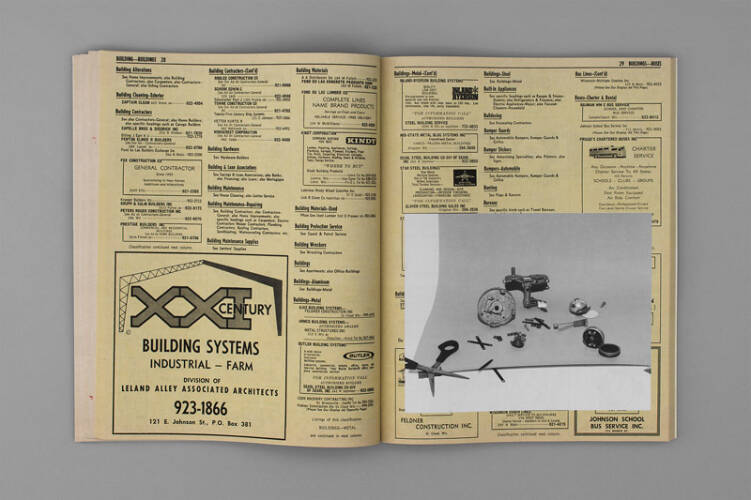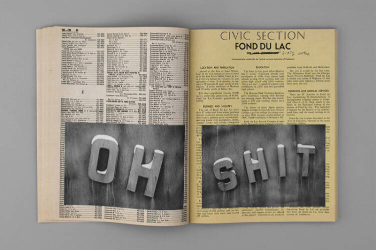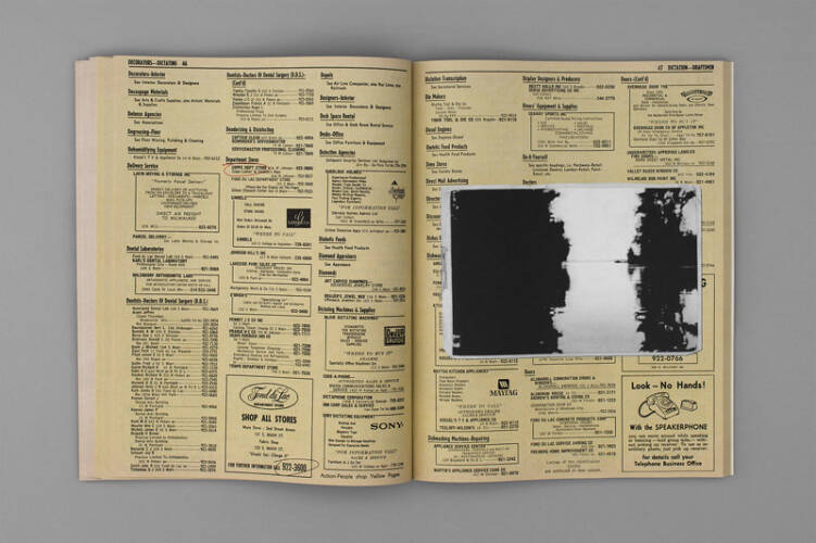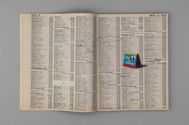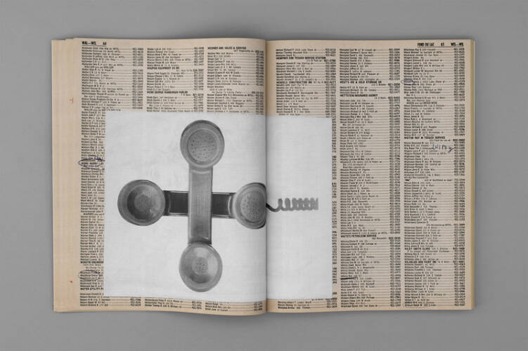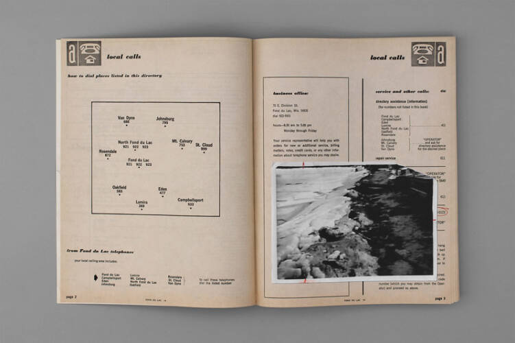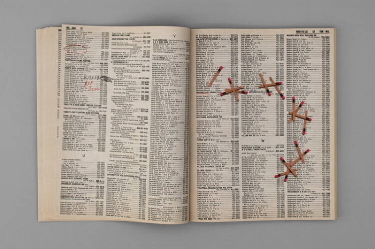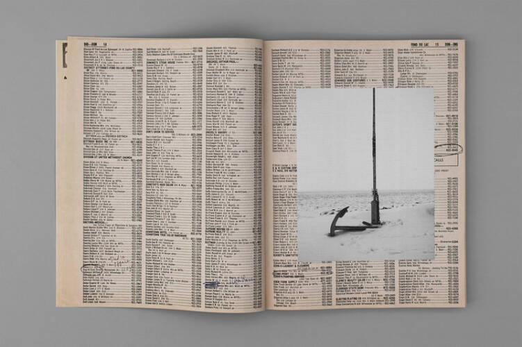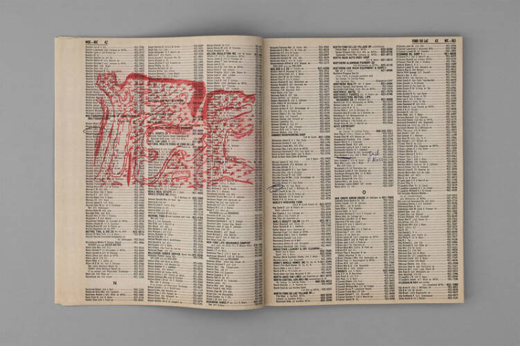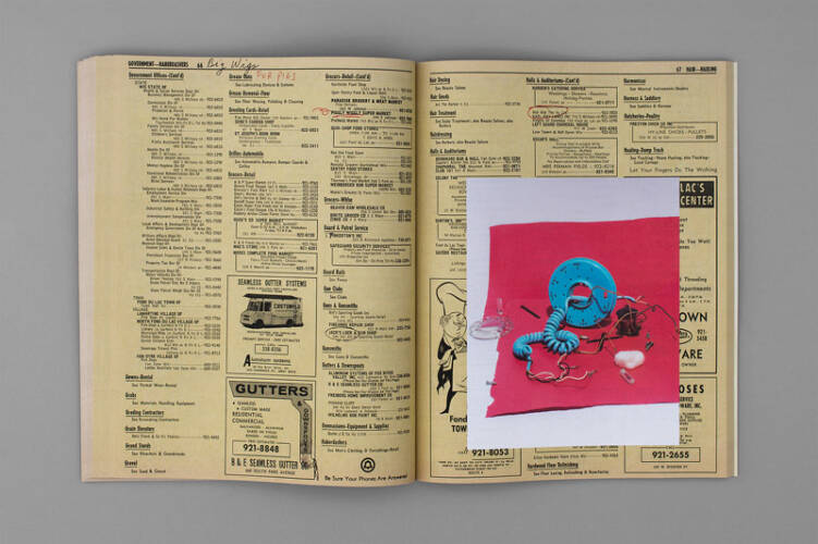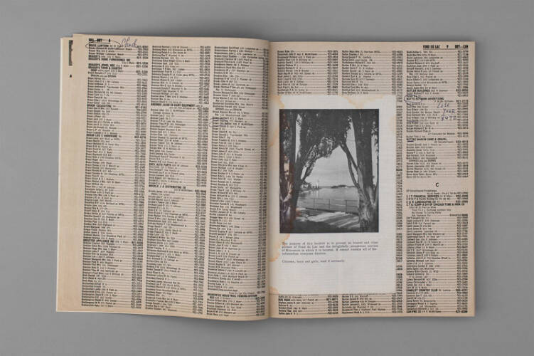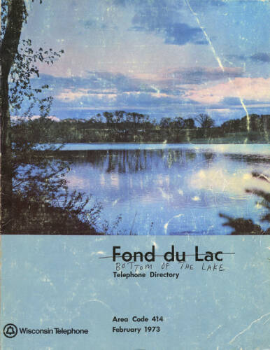 "Bottom of the Lake" a 256-page facsimile of the artist's family's telephone book for his hometown of Fond du Lac ("Bottom of the Lake"), printed in 1973, soon after his birth. The book includes found markings and reproductions of inserted materials, along with Patterson's own drawings, photographs and marginalia. Bottom of the Lake is a book within a book that carefully combines the original, found, fact-based phone book with the artist's highly subjective re-imagination of his hometown; it playfully juxtaposes different documentary forms and ways of seeing to create a deeply personal, darkly humorous "other" book. In addition, the experience of the book is extended beyond its pages by an interactive feature - a telephone number attached to the book that connects users with over 100 experiences mixing field audio recordings, found archival audio and performances that re-imagine and re-create the artist's hometown.