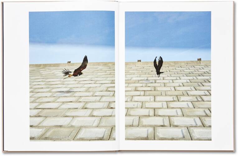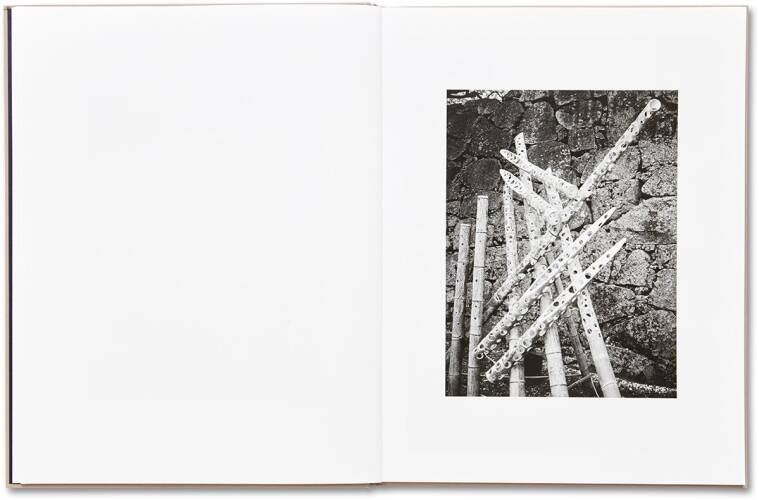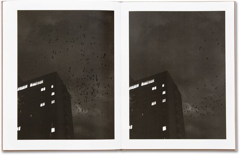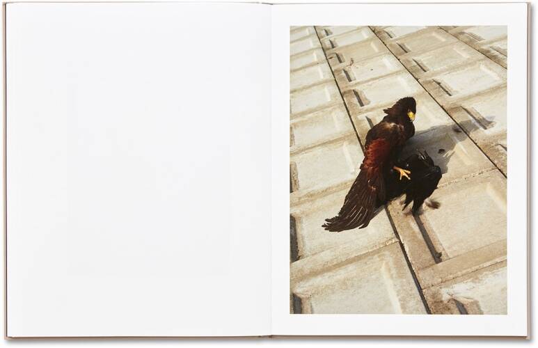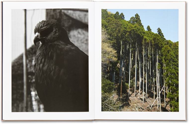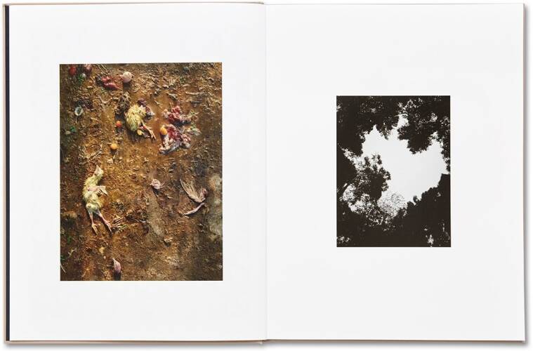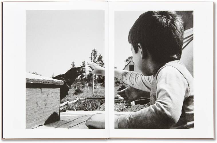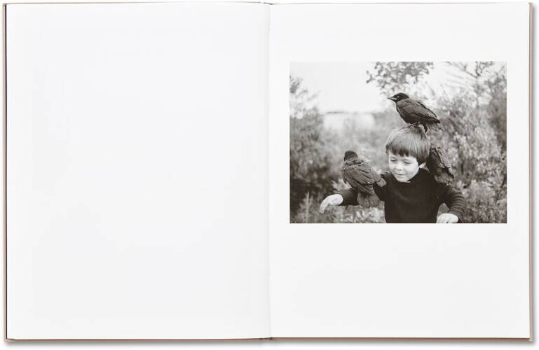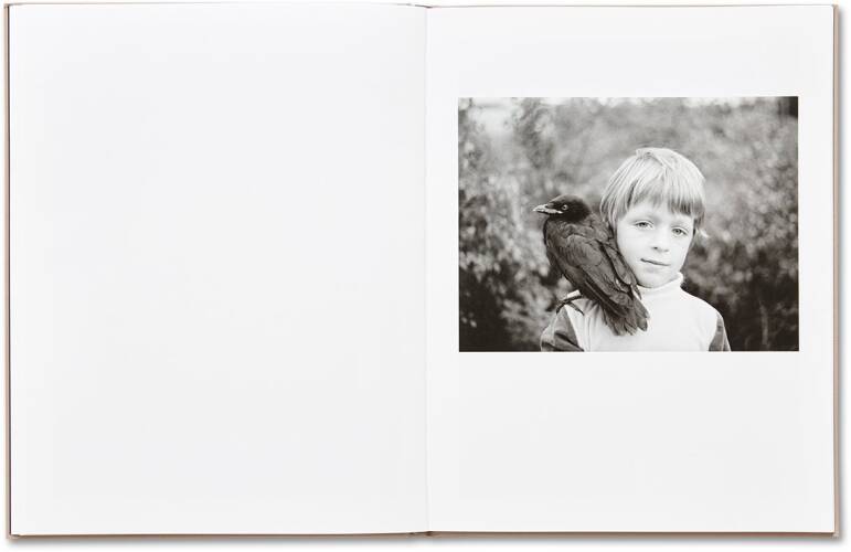 The genesis of Guillaume Simoneau’s new book, Murder, is in spring 1982. At around the same time Masahisa Fukase was producing his post-war masterpiece Karasu (Ravens), Simoneau’s family adopted a nest full of baby crows orphaned from a fallen tree. The photographs from this time, taken by Simoneau’s mother, paint an unusual and lyrical vision of childhood. Nearly forty years later, these moments are memorialised in dialogue with Simoneau’s new works, produced in the spring of 2016 and 2017 in Kanazawa, Japan. This setting, the birthplace of Karasu, punctuates the book with a further-reaching interest in tradition and timelessness that looks beyond the scope of these events to the landscape, famous thatched houses, the pine forests and coastline. The crisp, architectural qualities of the new photographs evoke a rendering of Fukase’s original that is, however, distinctly of its time. In Murder, the original black and white image of the photographer as a child, crows perched on his shoulders, is set alongside visions of violence: one crow hanging by rope, tangled and rotting, another pinned down by a large bird of prey. The mood of this contrast is never cynical: instead, it develops an ambivalent approach to nostalgia that is energetic and cathartic. Several of these photographs directly reference Karasu, and it is this language of violence inherited from Fukase that becomes the mode with which Simoneau challenges this inheritance.