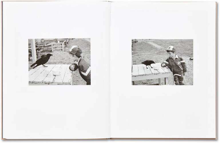 Throughout the book, the symbolism of the crow is constantly at stake. In the childhood images, the crow becomes an unlikely symbol of intimacy; coupled with blurred glimpses of the bird in flight, Simoneau threatens to restore the bird to its cultural function as an omen of turbulent times.