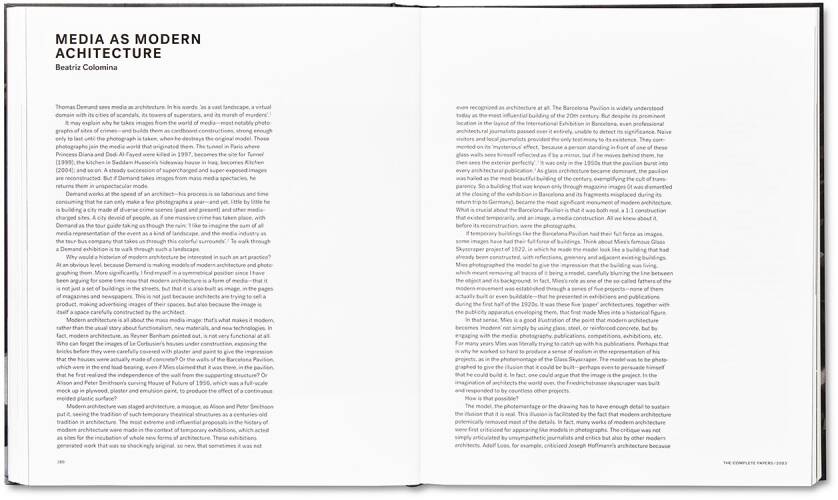 The Complete Papers is an extensive volume encompassing all of Thomas Demand’s work over the past 28 years, together with the primary texts written about his practice. The book includes previously unseen early works from 1990, together with reference reproductions on every one of his pieces. A newly commissioned interview with Russell Ferguson, new texts by Jeff Wall and Alexander Kluge, contributions by Parveen Adams, Francesco Bonami, Teju Cole, Beatriz Colomina, Jeffrey Eugenides, Julia Franck, Hal Foster, Rachel Kushner, Ben Lerner, Jacques Rancière, Gary Shteyngart, Neville Wakefield, to name a few, is concluded by a complete exhibition listing and bibliography.