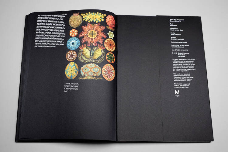 For her series 'When Red Disappears' Elspeth Diederix, ventured into the secret gardens of the Dutch waters in Zeeland. The benthic flora and fauna of this chilly, turbid, green-grey water turned out to display an extraordinary visual richness that was a perfect complement to the large body of botanical work that Diederix has made in gardens and parks. Enthused and inspired, she took on the ordeal of diving there in order to make underwater photographs of the astonishing colour formations revealed by her lights. Through Diederix’ goggles we glimpse an unspoiled underwater paradise, where life – in the form of shells, sponges, seaweeds, anemones and other organisms – shows its most colourful side.