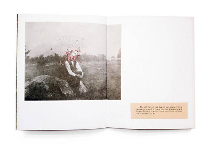 Upon learning of Plummer’s existence, Willett endeavoured to photograph a fragmented narrative amidst the same landscape he once inhabited. He scoured local archives to find first-hand written accounts describing the hermit’s character, as well as personal effects which appear in the book. Adding to the visual journey are historical portrait and landscape images from the region that inspired Willett’s physical intervention in the form of destructive applique and collage.