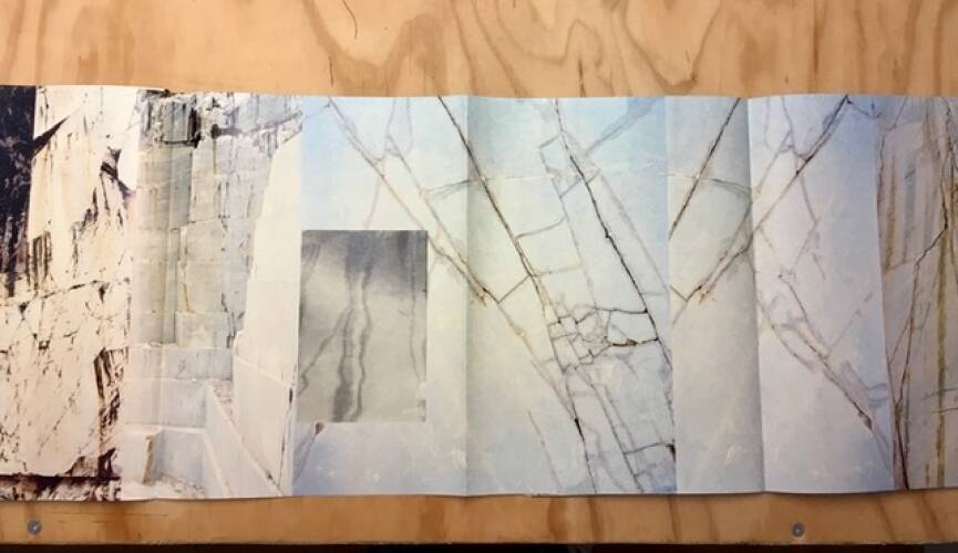 The brute matter to be molded and shaped: marble. The metaphysical landscape of the quarries, the colossal task, the continuous alternation of full, angles and nuances experienced as a soul-search.