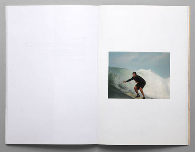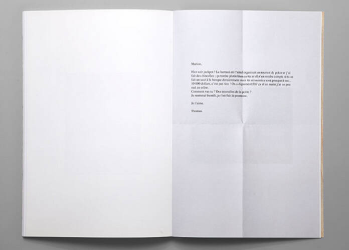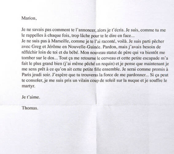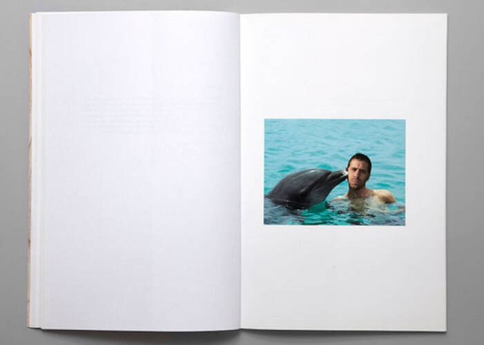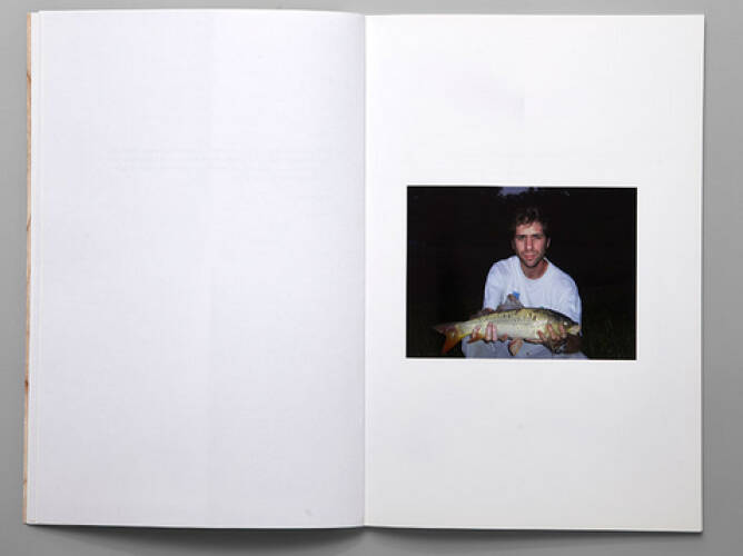 Gone Fishing tells the modern tale, through the form of a fictional correspondence, of a young man who prefers to go on holidays with his mates rather than bow to his new responsibilities as a father. As the letters progress, Thomas Mailaender paints the unflattering portrait of an adolescent Ulysses more inspired by beer, big-game fishing and table-tennis than by the joys of fatherhood. Each of the nineteen letters is illustrated by a portrait of the young father carrying out an appallingly banal exploit that is supposed to excuse his absence. These images are photomontages the artist has made from amateur photos he collected on the internet.