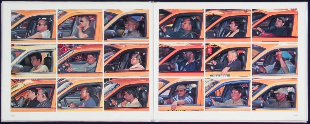 "For a book of art photographs, there is an extraordinary array of images. Having opened it, I turn the pages of each volume simultaneously: I can see sixty photographs of men in striped shirts; turn again, and I see an army of seventy-two men in suits marching to work; turn again, and a panorama of empty civic spaces. What are we being told? That this is a small world after all? Is this a Family of Man on a minimal grid?”
