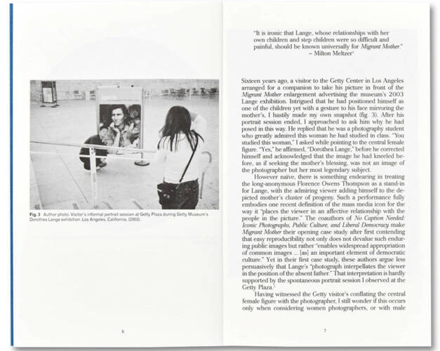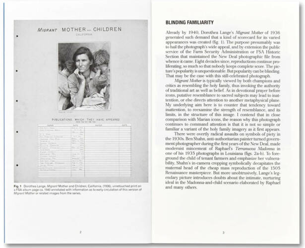 "I contend that in close comparison with Marian icons, the reason why this photograph continues to command attention is that it is not so simple or familiar a variant of the holy family imagery as it first appears."
