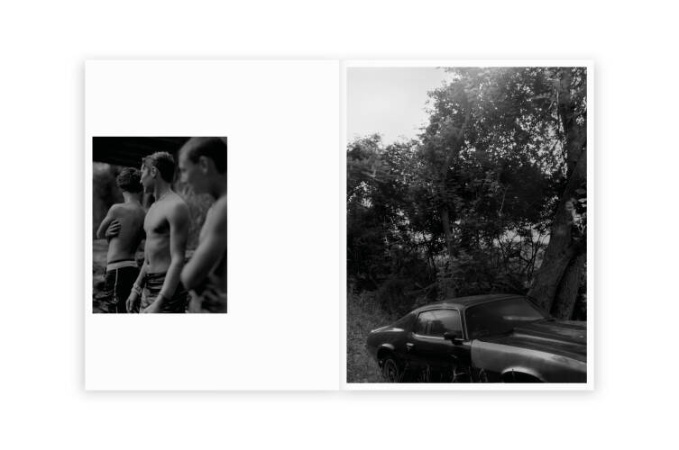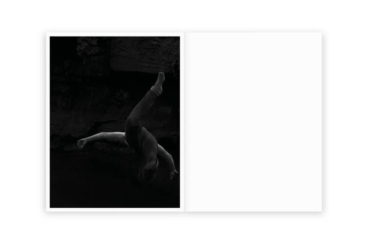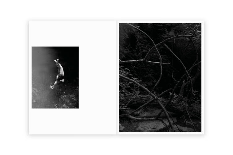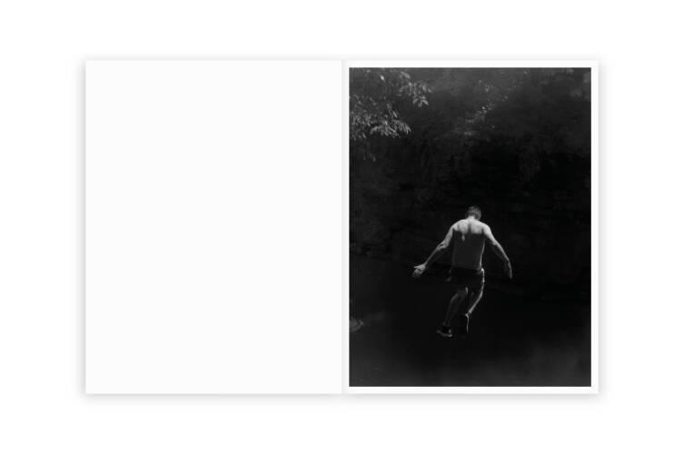 Over the course of multiple summers, Raymond Meeks has ventured the few miles from his rural home in the Catskill Mountain region of New York, to a single-lane bridge spanning the tributaries of Bowery and Catskill Creeks. Beneath the bridge, a waterfall drops sixty-feet over moss-covered limestone toward a forbidding pond. The local youth have come here from time immemorial, congregating near outcroppings and around a concrete altar – a remnant of an earlier stone bridge. Most allow themselves a brief running start before launching their pale bodies into the void, where tentative suggestions of flight mark the response to gravity. Taken collectively, their gestures allude to ritual, a prayerful response to the exigencies of budding sexuality and a future rife with uncertainty. Halfstory Halflife is a distillation of the photographs made in the shadows of these falls, marked each summer by the emergence of young adults perched at a precipice both in space and in their lives.