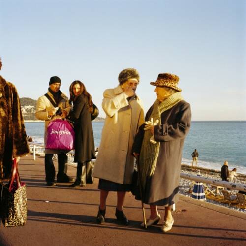A vice – the Promenade on the French Riviera: this is the first picture that crosses my mind when I look at these photos, simple photos, like the postcards of the ‘70’s. Don’t ask me why, but they recall Ettore Scola’s wonderful movie, “A Special Day”. The square shape is appropriate and is rare in photography. I like the photographs. This is Marco, from Piacenza, and it seems strange to see him in action on the beach, instead of on the hillside, but obviously, we tend to search for what is unknown, not what is known. A solid thread joins Marco’s photos, and it’s the moment in which they are shot, or at least it’s the impression we get of the light, the breathing space of the day, which is about to end, and the evening, which is drawing nearer. Actually, Marco’s photos contain much more than Promenade sensations – they display the faces of an accomplished immigration, of a modern and maybe lonely society. Yet letting my eyes wander even more freely, I notice the light, and ask myself: Is this the place of departure? Are these people all waiting to leave? The light always comes from the sea, the shadows are the condemnations of the Earth, not of the horizon, and thus of us human beings. A place of stalemate, with no seasons. So many lies can be told while photographing the truth.