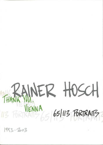 "Thank You, Vienna" presents photos from the years 1993-2003. "The work of a portraitist often focuses on the human face. Studying the history of close-ups one inevitably comes to mug shots, passport photos and photo booth strips. My fascination with all three led me to experiment with lighting techniques that evoke the same kind of feeling and energy. This small series was created with a ring flash, a very in your face kind of light that even surprises and challenges these veteran subjects that are very familiar with the typical process of a portrait session".