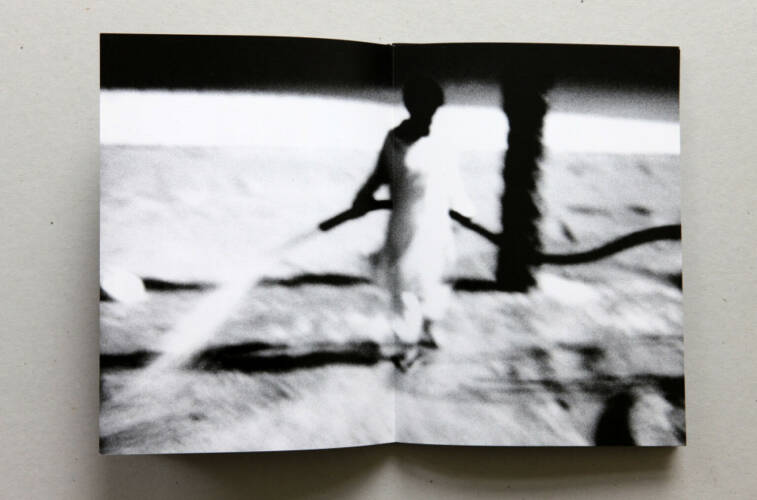 Black & White (tritone) images that suggest more than they show, where blurring (out of focus) and grain of the image are used in a very relevant manner, without overdoing it. The printing is of very high quality.