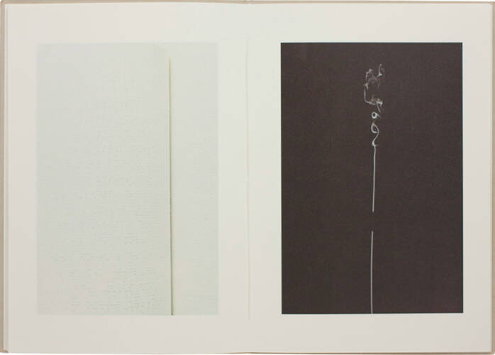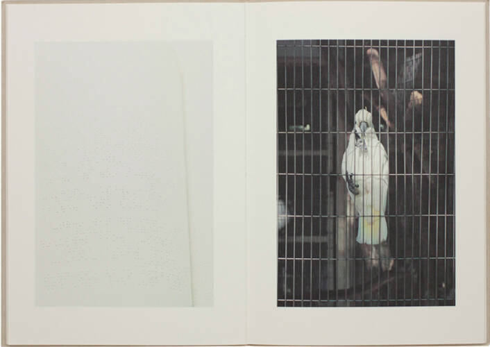 Tomoki Imai usually uses 4x5 format camera with a tripod as we can see his published works in the past, like Mahiru - in the middle of the day, Seigensha Art Publishing inc, 2001, Light and Gravity, Little More co., ltd, 2009 and etc.. This book was composed of 24 images by using 35 mm photography works with MATCH's suggestion. Among images with beautiful light surrounding, the entrance of an obsolete cafe, water fountain of a park, a couple at a street crossing, white bird in a cage.. we see 8 photographs of the book pages in braille. They are reproduced from the book, Truman Capote's short story A Tree of Night. The photographer chose the subjects in deep quest of answers, how the photographer could sympathize with blind persons. is that possible? The journey of Imai between visible and invisible makes feel us everlasting loneliness in a labyrinth beautifully.