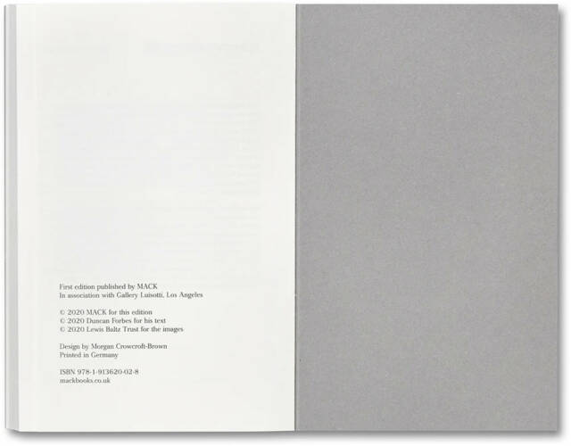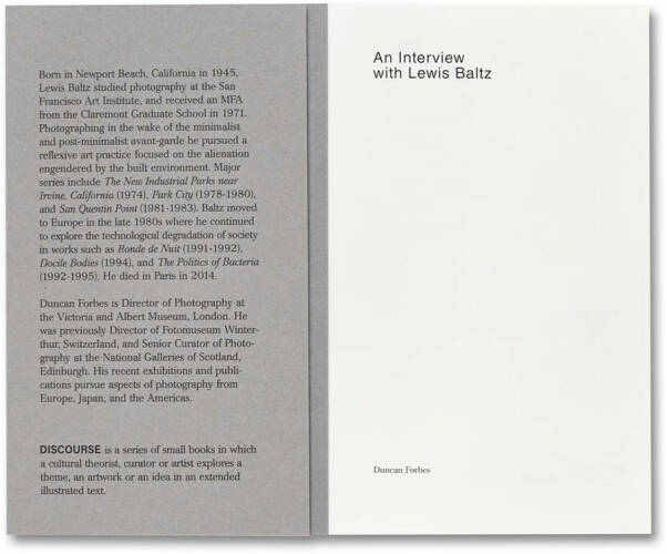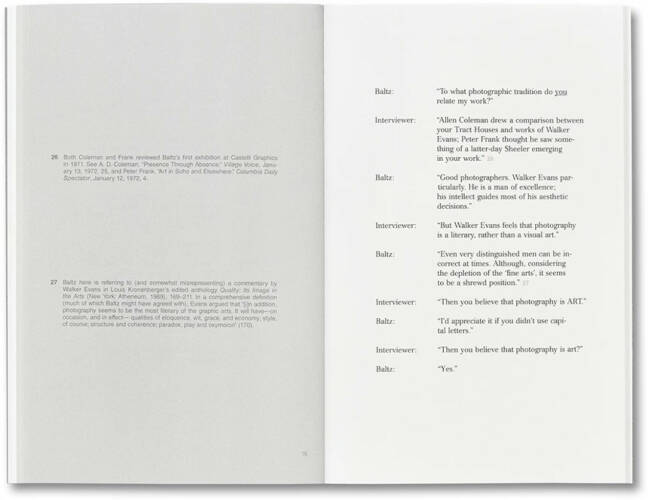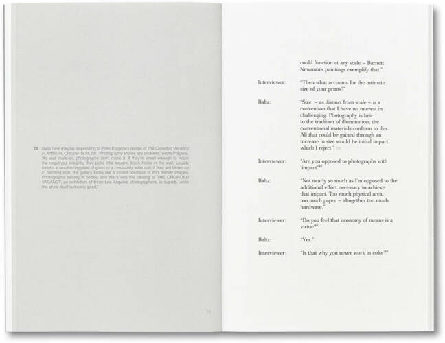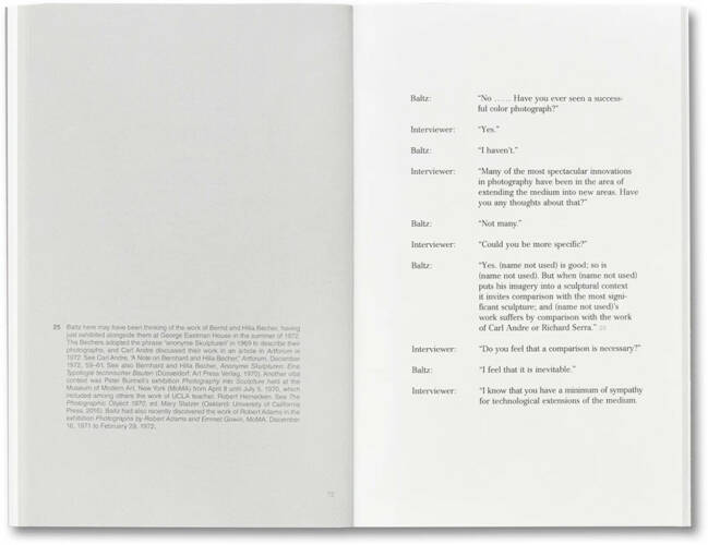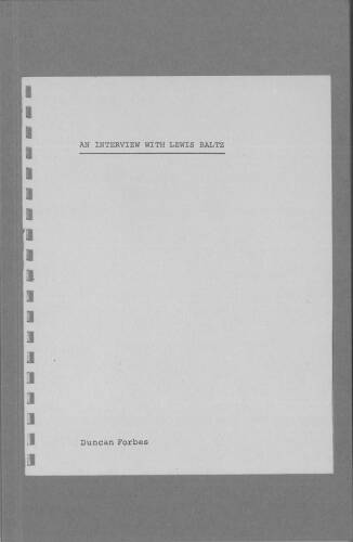Baltz’s interview is fully annotated with an introductory essay by Duncan Forbes.