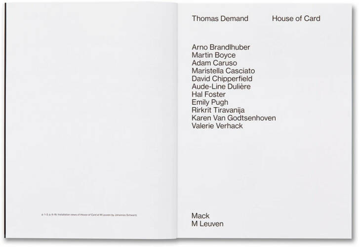 Published on the occasion of a major solo exhibition of Thomas Demand’s work at Belgium museum M Leuven in October 2020, this book focuses on Demand’s relationship to architecture and his engagement with architects over almost fifteen years. The starting point is his ongoing series ‘Model Studies’, in which the concept of the model itself is key, and includes rarely show projects such as Black Label (2009), Embassy (2007), and Nagelhaus (2008).