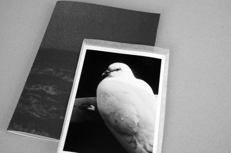 Comments: Booklet printed on silver paper, soft silver silkscreened cover on dark grey paper, printed flap covers, Singer binding, offset printing, 18 x 24 cm, including a SIGNED 13 x 18 cm Print