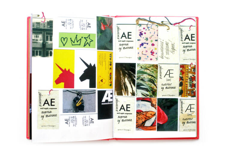«Aloe» is a group of 21st Century Punk Intelligentsia fromSt. Petersburg, Russia - a new subculture community inspired by pop-cultureof the 90-sand 00-s. Yana Perovskaya founded Aloe 9 years ago. In the beginningit was a tiny second-hand store. Yet now Aloe has its own clothes brand, every occasion outfit rental, they release recycling collections, participate in charity initiatives, actively advocate for an ecological lifestyle and organise the famous Dikoe Disco party. Last gig were attended by 7-8 thousand people. The book cover was made from a fabric similar to that use for clothes tailoring. Unicorn patch on the cover is Aloe logo. Thermal sticker on the flyleaf is also used in clothes making. There are a lot of hand sticked inserts and stickers because the book was creating with an attention to detail as same as Aloe clothes and the party decor. At the end of the book you will find an envelope with postcards and stickers usually printed for giving away at the entrance of the parties. Questionnaire for friends made by Yana is the key to understanding the book. Answering the questions you can feel yourself as a part of the community, a friend. Also you can find some of my answers at the photos. Entire design of the book refers to school questionnaires