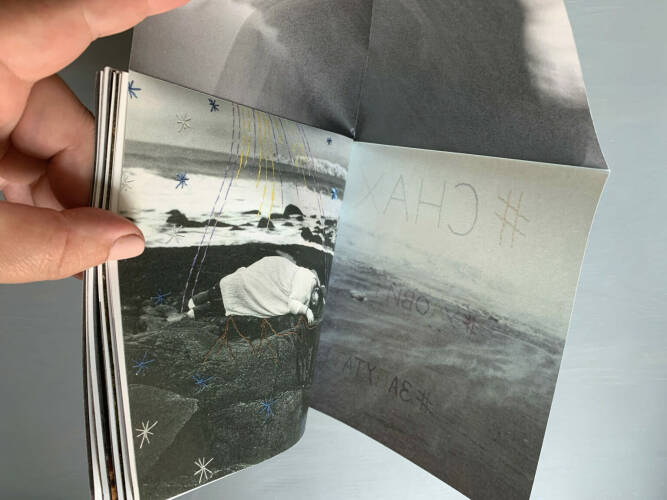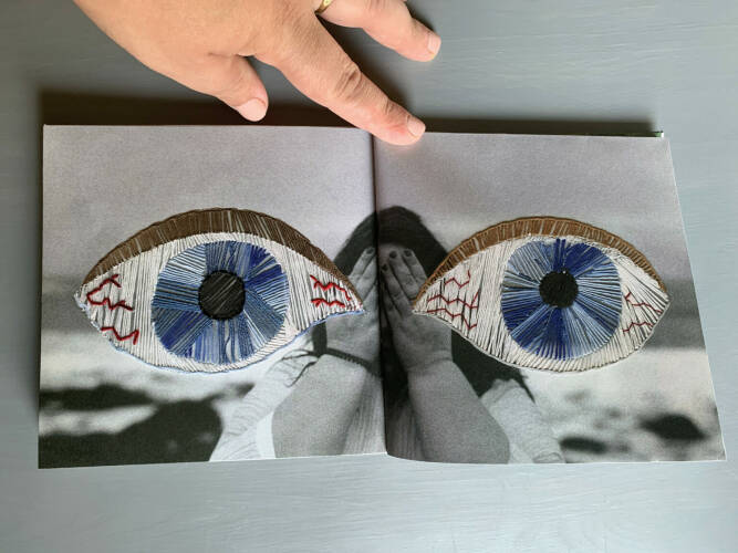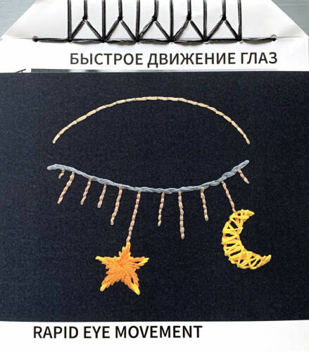 In the course of work, I added embroidery to some photos. I was captured by the idea of threads, that, on the one hand, connect sleep and reality, and, on the other, create an extra dimension, as it often happens in dreams. The book includes both scans of these embroideries, and pieces of real embroidery, handmade on the pages of the book. I sewed the book together also by hand.