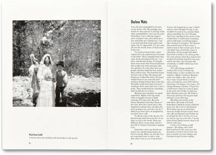 When Wendy Ewald arrived in the heart of the Appalachian Mountains in 1975, she began a project that aimed to reveal the lives, intimate dreams and fears of local schoolchildren. Tasked with finding authentic ways of representing the lives of these children, she gave each of them a camera and interviewed them about their childhood in the mountains. Through these intriguing transcripts and photographs, we discover the lives of families as seen through the eyes of their children: where domestic, rural life is understood with startling openness and depth. In Portraits and Dreams, life’s most mysterious realities – love, loss, violence, death, new life – are given voice through an altogether novel discovery: the camera. We learn the eloquence and originality with which children see the world and we see a generous new way of engaging children in the possibilities of the photographic medium.