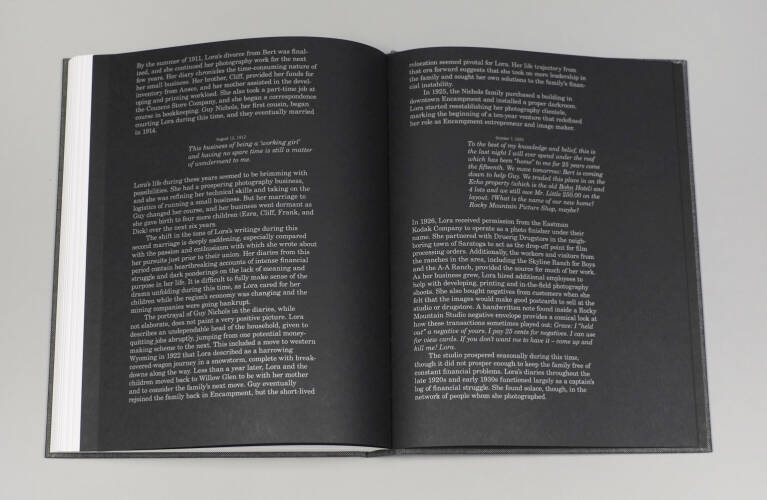 ‘Encampment, Wyoming: Selections from the Lora Webb Nichols Archive 1899-1948’ features Nichols’ own work and the images by amateur photographers she collected in the early 20th century as the proprietor of a photofinishing business in southern Wyoming. Culled from over 24,000 photographs, the book provides a dynamic visual window into the social, domestic, and economic aspects of the American Western frontier and captures an elusive sense of place through the images of this community of friends, families, and strangers.