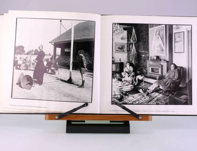 A comfortable copy of this collection of extraordinary, effective, affecting photographs of the working class Afrikaans town of Boksburg, near Johannesburg. At the end is a reproduction of: "Declaration of Group Areas at Boksburg, District of Boksburg, Province of the Transvaal" from 20/1/1982 - a bewilderingly detailed legal separation of and allocation of areas for different races. The book has evidence of avid use throughout. The boards have some mild-mannered wear about the edges, corners. There is light scuffing. They are steady and sure. The contents have occasional wear and user creases. Otherwise, they are confident, certain, clean, clear, confident, assured, curiously addictive.