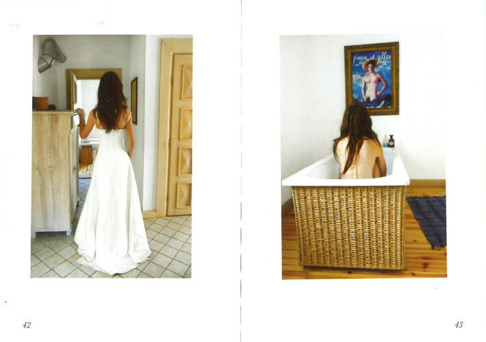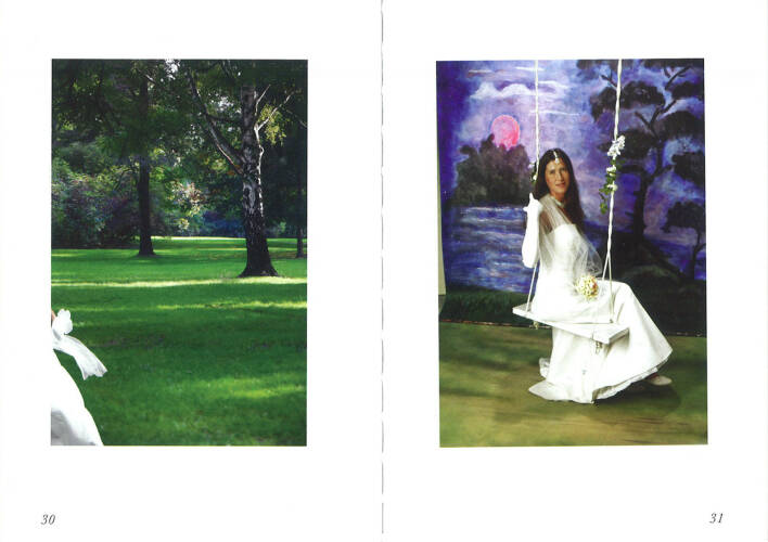 “Desire” is a story of a real wedding dress I received as a gift before my wedding which never took place. Left with the object I started working with it. It is the dress who is the main heroine here – and its story represents a story of how objects and things rule our life…. The Dress was photographed in a nearby photo studio against traditional hand painted cheesy backgrounds, another session took place in a Warsaw park. While in India (where my honeymoon was supposed to take place) the dress and I visited a local photo studio, and had a primitive photo session done. The Dress was borrowed (Swedish bathroom ad session, lesbian wedding magazine photo session, an American friend’s book project) and even danced in…