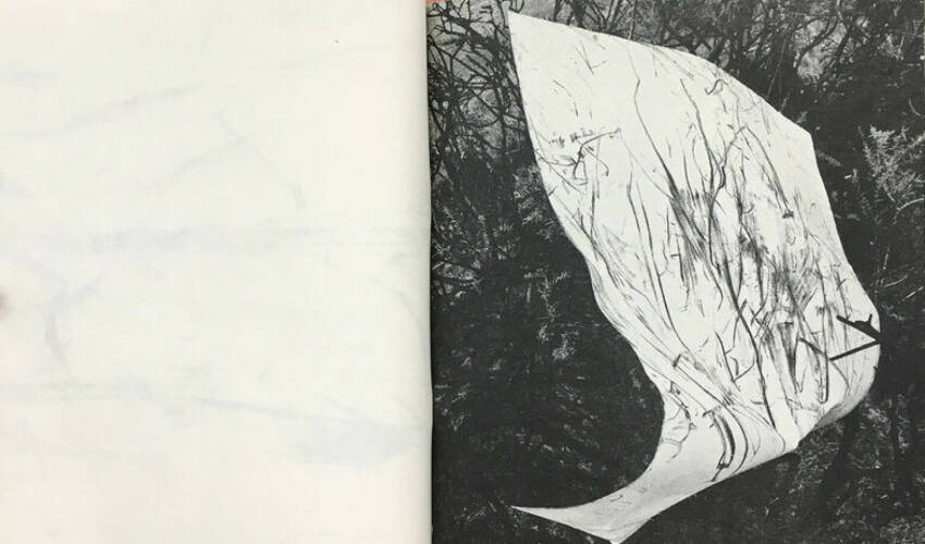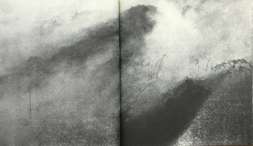 "These earthworks are the result of movement through burnt gorse, the accidental interaction of stick on cloth and skin, and subsequent compulsion to index the marks on paper. Sculptural and photographic, the sheets are torn by the wind and projected by sunlight, gorse branches scratched past incidental stains morphed from inconvenience to involvement. Pulled by the eternal draw of smoke and fire, the work is a synch to primal humanity." - Jack Whitefield.