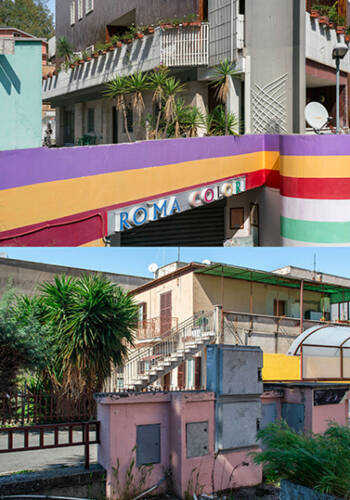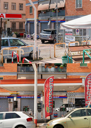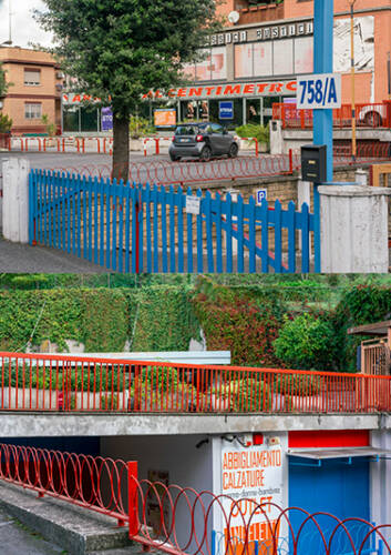 Around a Rome celebrated by classical iconography, the city of great beauty with a monumental and somewhat decadent charm, with its iconic places envied by the whole world, there is another city. Hidden and alien to tourist flows. An area inhabited and lived by more than half of Roman citizens. A chaotic city, often abusive. With its gates, railings, walls, trees, archaeological findings, cars, which overlap and merge in an extraordinary and unique visual chaos. It is the periphery. Indeed, the suburbs. Different from each other but all united by the same visual and architectural anarchy. In this work, which has unfolded for over two years along the perimeter of the city, the author has sought relationships, passages, dialogues, almost as if trying to put the chaos of reality in order.
