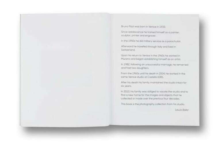 Live in the house and it will not fall down is a gallery of fragments, a collection of memories, the story of one and more people, of a house, of a city. Compiled by Italian artists and recipients of the first Lewis Baltz Research Fund, Alessandro Laita and Chiaralice Rizzi, the book was built from an archive of images collected over four decades by the late Venetian artist Bruno Rizzi, who died in 2004. Spending long days in the artist’s Venice studio, Laita and Rizzi intervened in the delicate geology that underlies such piles of papers, postcards and photographs sedimented over the years. Set free from their previous binds and rebound in a new order, the images serve as traces of the artist's life in sync with the gentle currents of the floating city.
