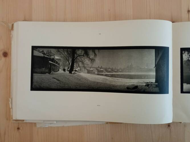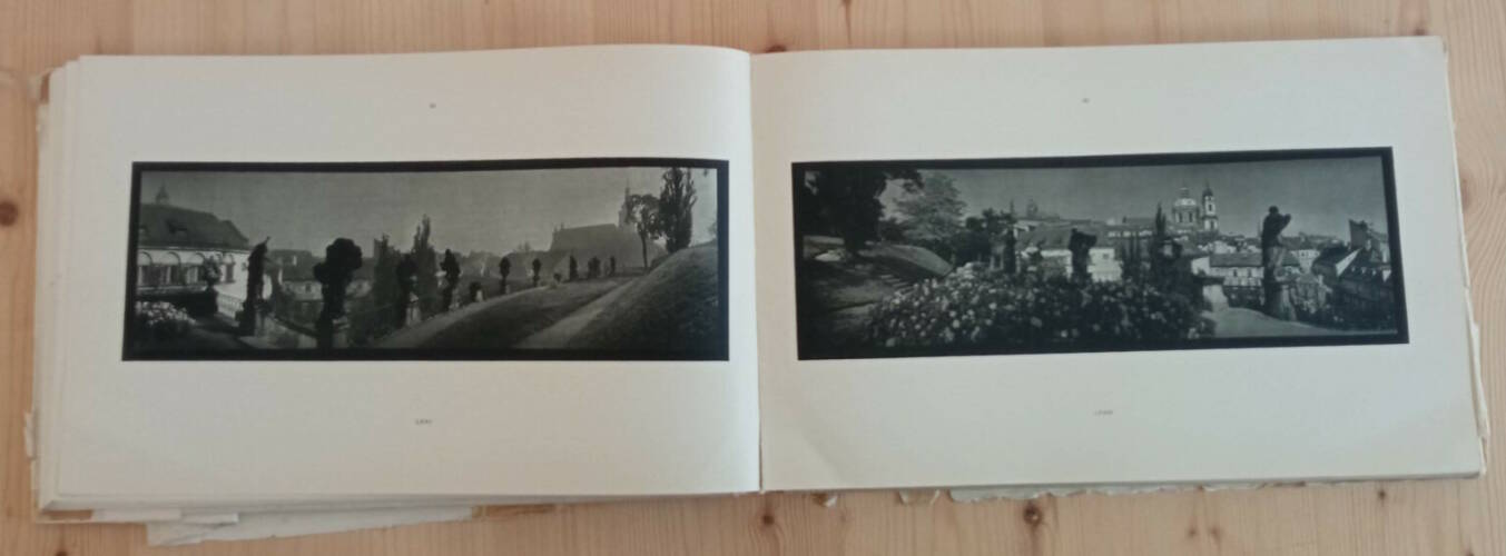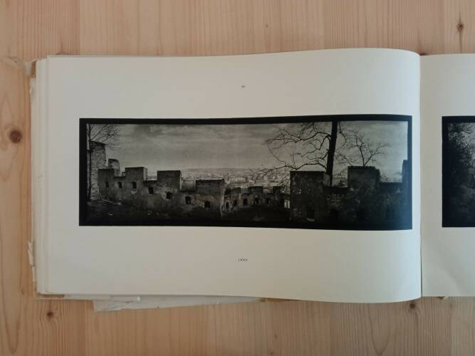 “Sudek is a photographer whose body of work suggests that photography was as necessary to him as breathing, Josef Sudek claimed the city of Prague and his surroundings as comprehensively as Eugène Atget claimed Paris His masterpiece is one of the most singular photobooks ever made, Praha panoramaticka (Prague Panorama). To create this wealth of memorable images, Sudek used an antique 1894 Kodak Panorama camera with a spring-drive lens that produced a negative of approximately 4 by 12 inches. Of all his books, this one sums up his love of Prague. The panoramic camera is a strong unifying element in the imagery, but so is Sudek's democratic eye, which disregards nothing. His feeling for light, weather, and space in combination has never been surpassed. Praha pnoramatické is a veritable encyclopedia of how to plot, construct and unify a panoramic photograph. And if this were not enough, Sudek even pulls off a near impossible trick at the end of the book: good vertical panoramas". - Martin Parr & Gerry Badger in "The Photobook: A History "