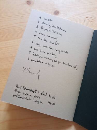 Heidi Schwarzkopf explores 'nine small experiments' like 'run like Usain Bolt' or 'hug me more than twenty Seconds' in nine small black and white Drawings, that somewhat resemble bodies, but rather the Feeling the Experiment creates.