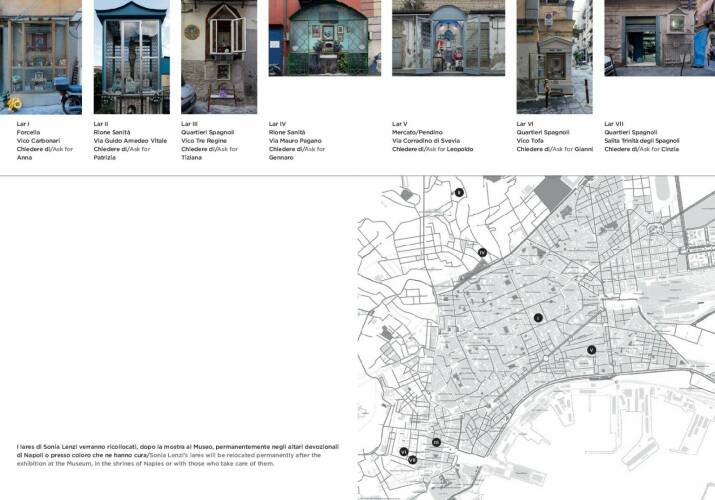 In the Roman world, and therefore in the Vesuvian area, the lares were divinities who assured protection and luck for the families to whom they belonged, thus were given an honoured place at the heart of the house, in a special shrine, the lararium. This practice bears more than a passing relationship with the neighbourhood and familial kiosks, the votive shrines in the old quarters of Naples. The aim of Sonia Lenzi’s work it is not only to examine the fascination link between these traditions, but to actually bring them together, and in essence demolish the centuries in between. The lares of the Museum collection become three-dimensional photographic objects that some families of the Quartieri Spagnoli, Rione Sanità, Forcella and Mercato have placed in the shrines within their guardianship. In this way these ancient bronze statuettes have been put “back to work”, so to speak, adding their voices to the others interceding in the kiosks for the departed. But Sonia Lenzi has also created contemporary lararia, making seven contemporary ‘kiosks’, so that the two traditions can be placed side by side. All Lenzi’s work is about interaction and connection, within the domestic family certainly, but also within the larger family that is society. She is concerned with the relationships between people, between cultural traditions, between eras. Many of her projects contain what might be termed a ‘performing’ aspect, an active element. Foreword by Marco De Gemmis, critical essay by Gerry Badger and “backstage” by Claudia Procentese.