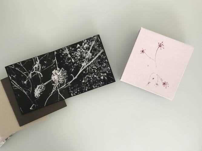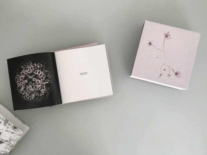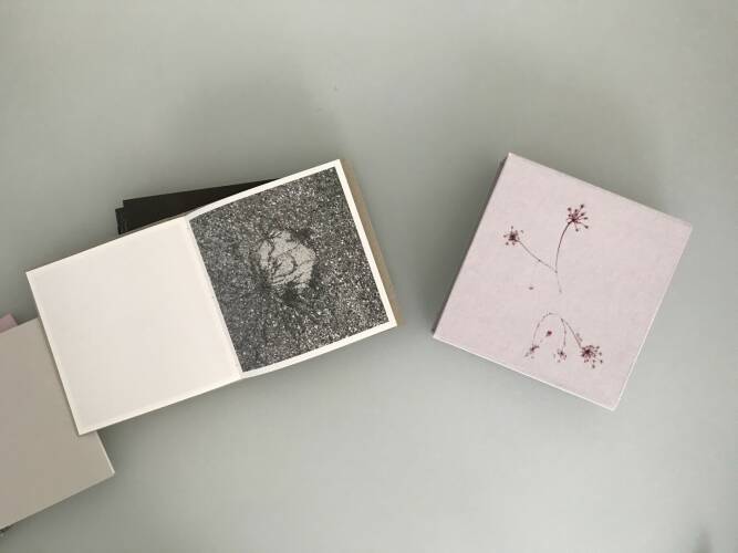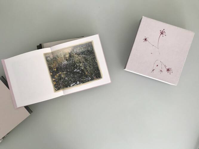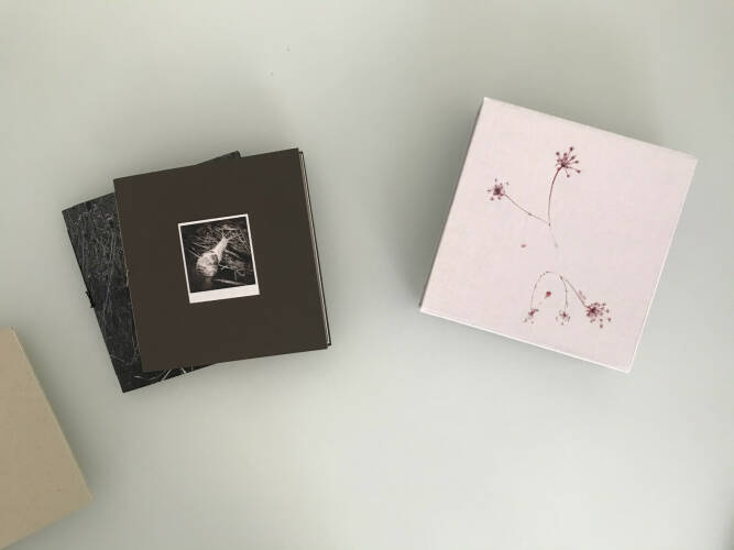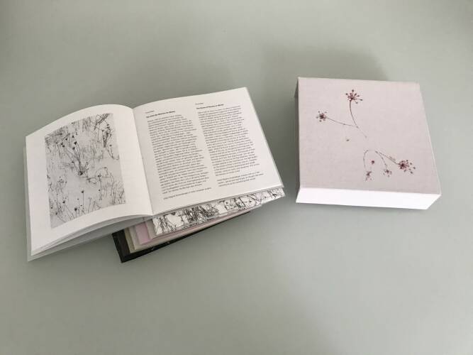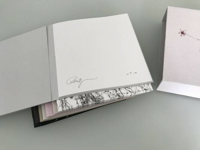 Comments: First edition of 300 signed and numbered copies including 20 collector's editions with a signed print. Size: 20 x 20 cm. Eight handbound booklets in a linen slipcase. More than 20 different papers have been used for this artist book. One of the booklets (Frost) is printed with silver on black paper.
