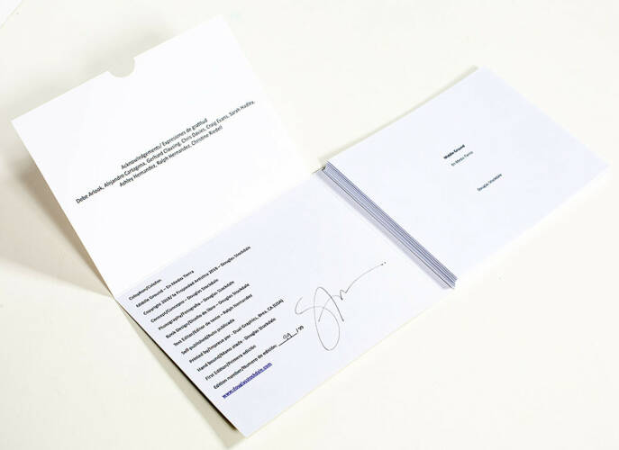 Comments: Printing: 4 color commercial lithographic printing Leporello binding: hand-bound (glued) by the artist Stiff covers with flap-over French fold, Leporello book design Book design and layout by the artist Artist book, edition size 99 + 5 A/P Book trim size: 6-1/2” x 8-1/4” (165mm x 210mm) Acknowledgements & Colophon, without essays, captions or pagination Interior paper: 80# Gloss Cover Text: English and Spanish
