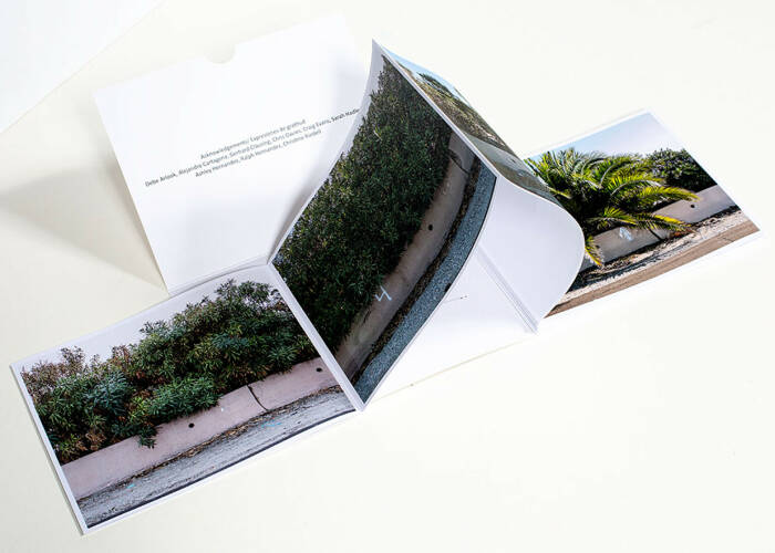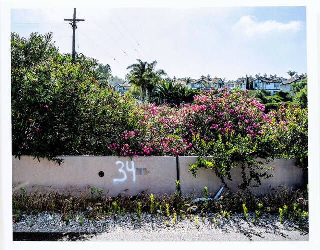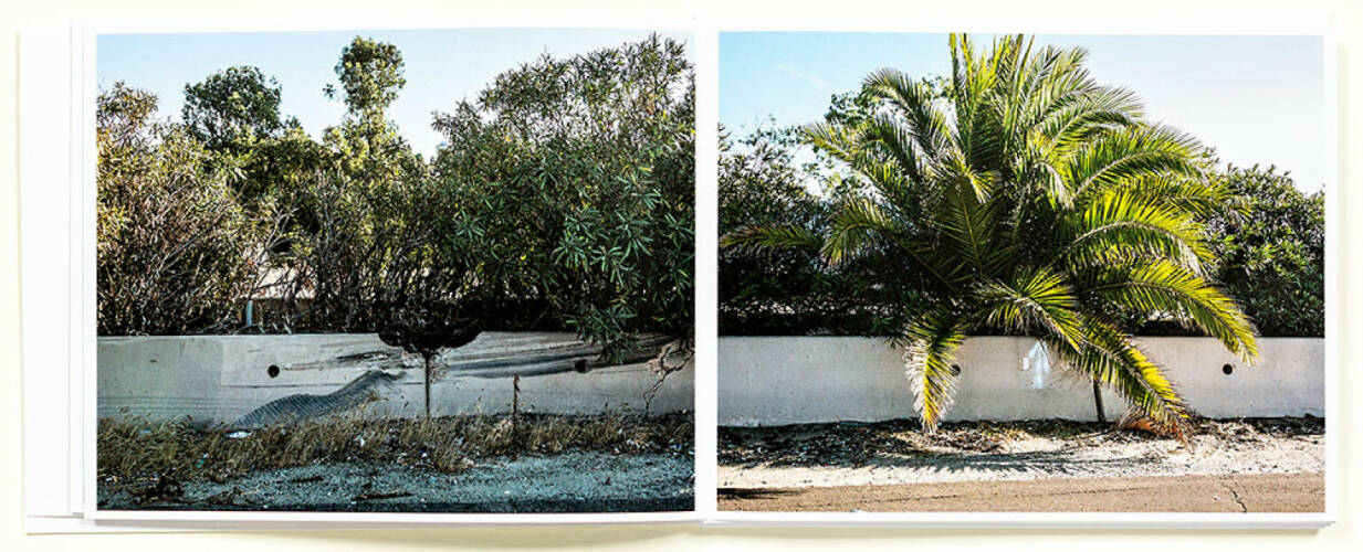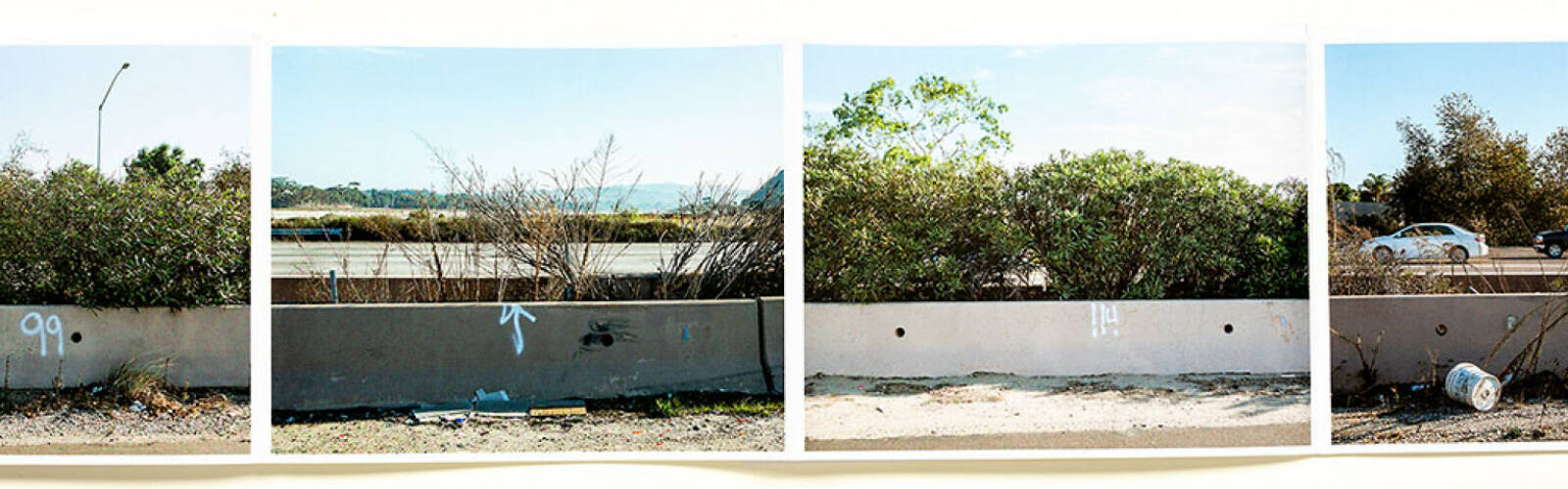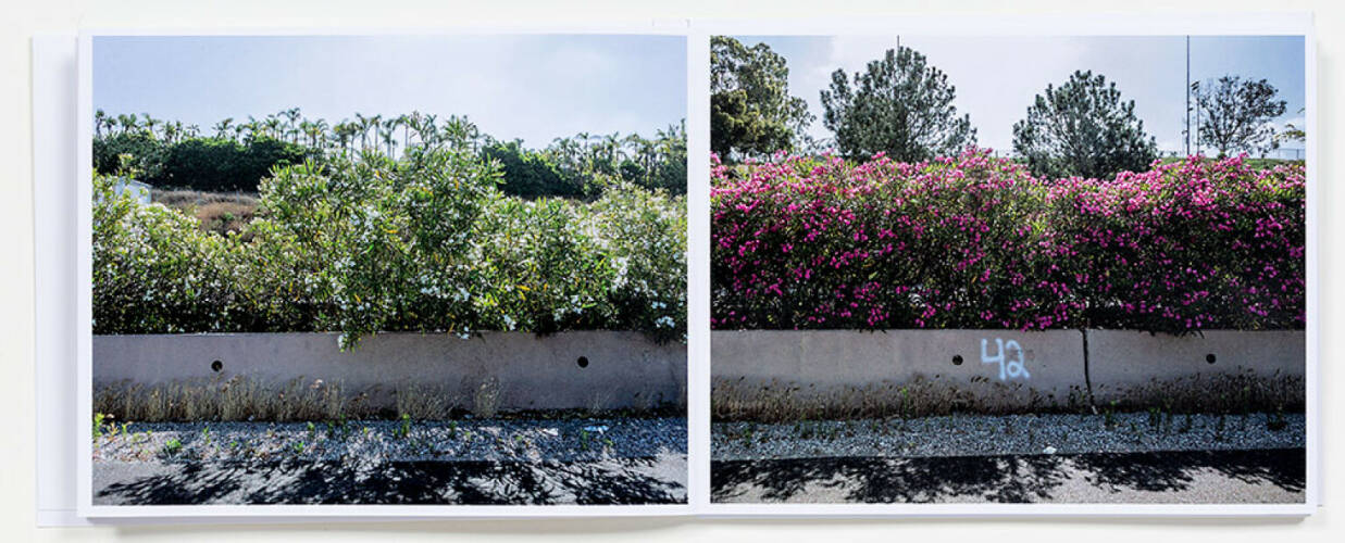 I self-published a limited-edition artist book Middle Ground as a gut-reaction to current political events occurring in the United States in 2016 as it related to the California border with Mexico. The beauty and angst of a border-land was represented by a section of the California I-5 Freeway as it transverses through northern San Diego, a roadway that has its median planted with ornamental Oleander bushes.