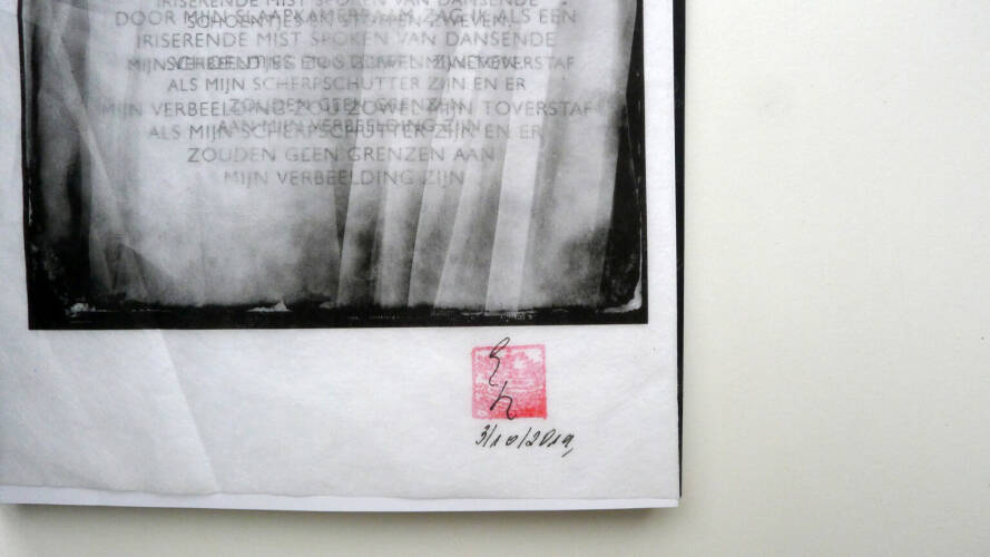 Comments: Various papers // e.g. double layered kozo washi paper 14 gramm and rice paper 42 gramm, Handmade: glued, pressed. Leporello, 21 x 16 cm, language: dutch.