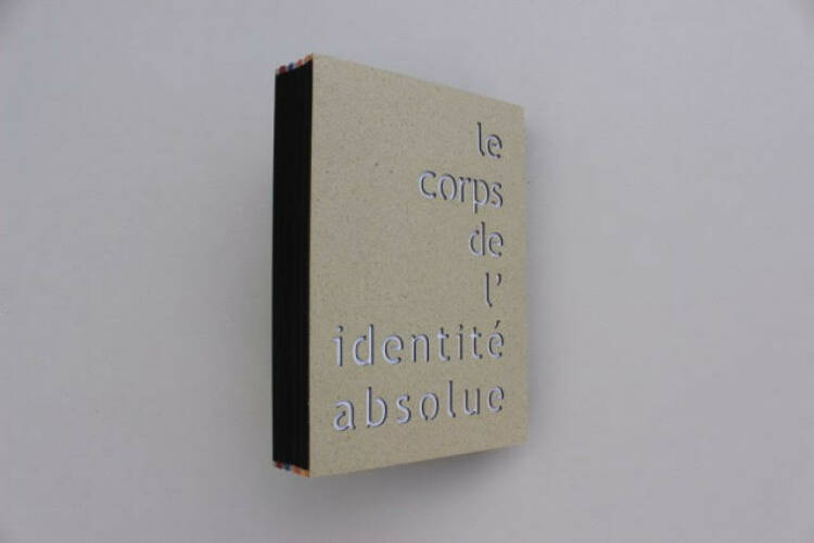 This book, born of Gabriela's discovery of a mystical poem in the work of of Michel Houellebecq's work, required 2 years of maturation, conception and and realization in order to achieve this material and spiritual material and spiritual. The mystery of the poem echoes the strangeness of of the times we live in. The result is that certain materials are brought together in an unusual way in a book. In an e-mail, Michel Houellebecq described "The Body of Absolute Identity" as an old file in the absolute identity" as an old case in the sense that the mystical quest at the heart of the of the poem has been open to him for a very long time. So we have used this remark to create the back used this remark to create the spine of the book so that it gives the impression of the impression of different coloured folders bound together by a strip of by a black velvet calfskin band.