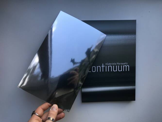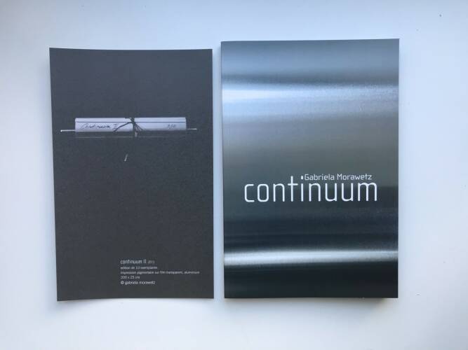 This catalogue presents photographs from Gabriela Morawetz's solo exhibition CONTINUUM. The majority of the photographs were made using a silver print technique on black paper.