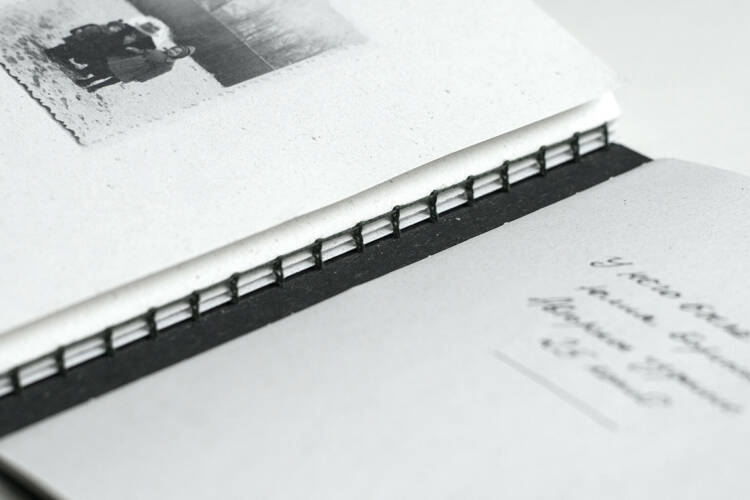 The cover is made of thick, 360 g, Favini Refit Wool - the new recycled paper from cotton and wool.