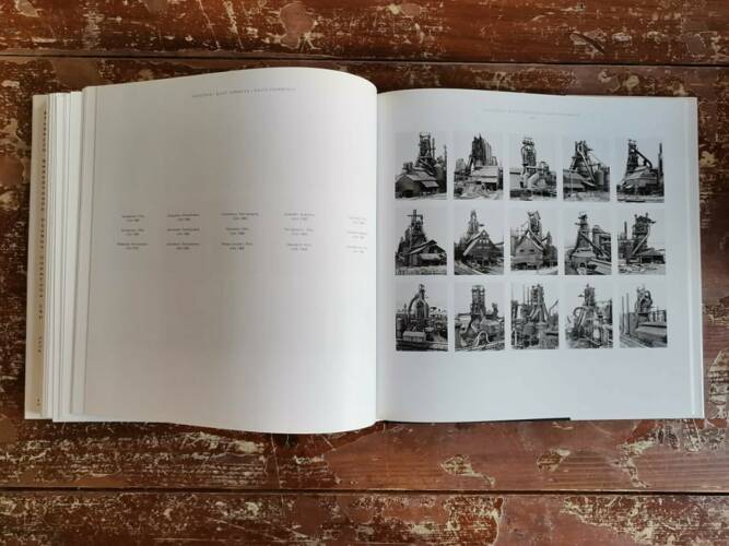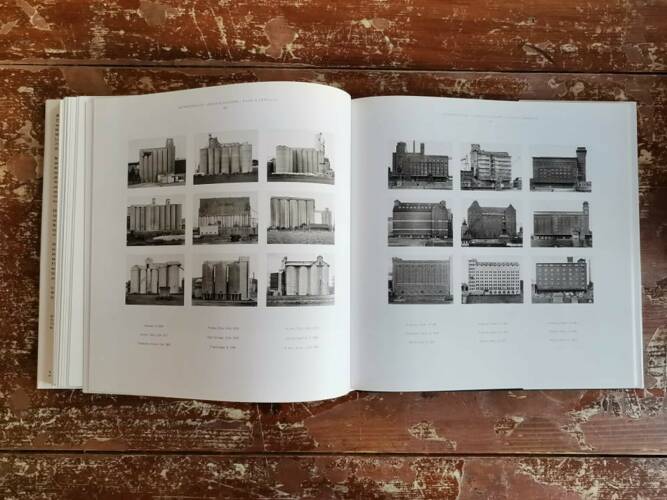Typologies, published in 2003 as a catalogue of the Kunstsammlung Nordrhein-Westfalen, has become a standard work of our house. It contains 130 - and thus almost all existing - compilations of individual photographs of the same building types as tableaus. The Bechers prepared a total of twelve subject groups of industrial buildings, from water towers to factory buildings, in typologies with different numbers. The abundance of material condensed in this way - all in all 1528 photographs - allows a comparative view and unites scientific systematics and aesthetic empiricism.