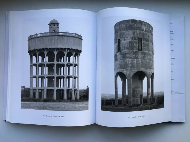 On long journeys through Central and Western Europe and the United States, Bernd and Hilla Becher have collected a wealth of examples of the industrial building type water towers since 1957. Although water towers are so-called functional buildings that occupy a clearly subordinate position in the hierarchy of architectural art, the examples photographed by the Bechers between the turn of the century and today reveal an unprecedented diversity of forms that reflect national styles and local traditions as well as the imagination, temperament and innovative spirit of their builders.