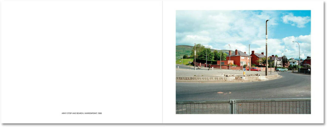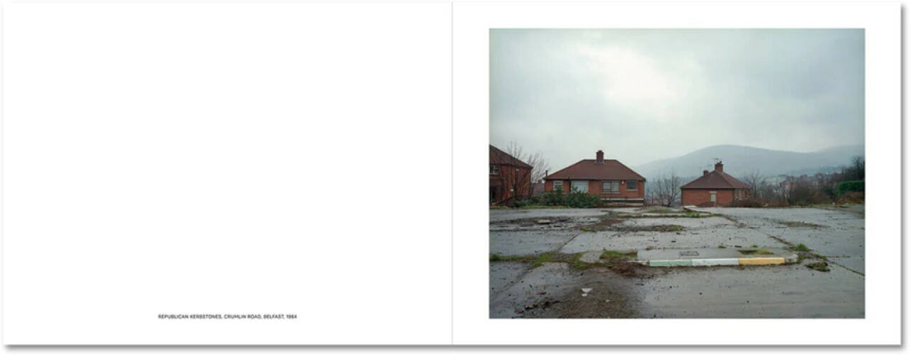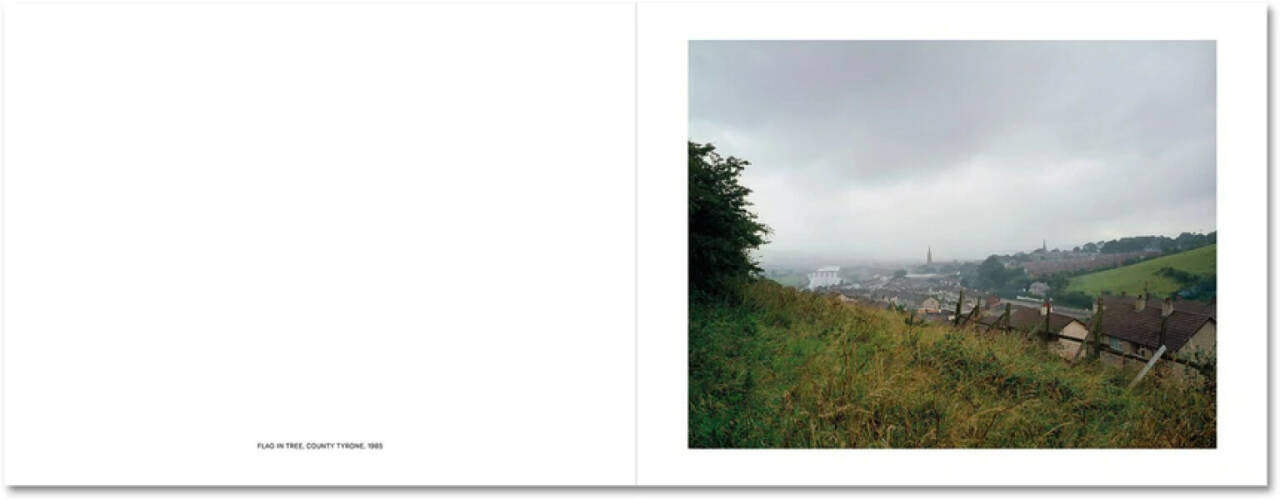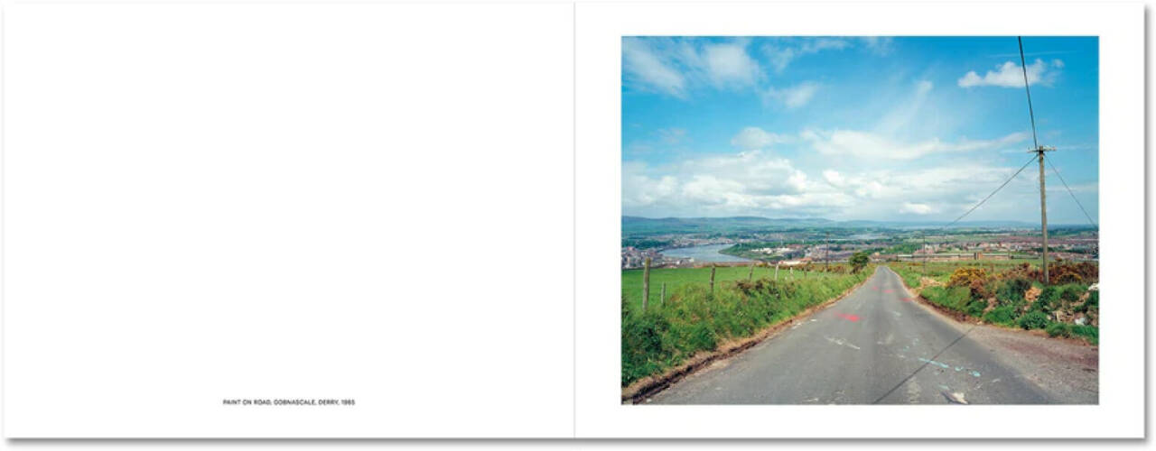 An iconic project made at the height of the ‘Troubles’, Troubled Land deals with the small but insistent signs of political division embedded in the landscape of Northern Ireland. At the heart of the Irish conflict lays the land — who owns it, who controls it, whose history it expresses. Paul Graham’s quietly radical book keeps this material truth in mind as it uniquely combines landscape and conflict photography, seducing us with bucolic views in which telling details only gradually appear: painted kerbs, distant soldiers or helicopters, flags and graffiti, paint-splattered roads, each tacitly aligning that location to its Republican or Loyalist allegiance. Pastoral photographs of green fields and hedgerows reveal themselves to be images of conflict and dispute — despite the steadiness of the photographic frame and the clarity of Graham’s vision, this is unsettled land. Originally published in 1986, Troubled Land is reprinted here for the first time in thirty-five years. Controversial then for its use of colour and refusal to follow the clichéd tropes of photojournalism, the book was pivotal in providing a fresh perspective on Northern Ireland’s ‘Troubles’ and left a lasting impact on landscape photography, suggesting how it might engage with politics and society rather than escape from them. Together with A1 – The Great North Road and Beyond Caring, it completes a new edition of the remarkable trilogy of books Graham made in 1980s UK.