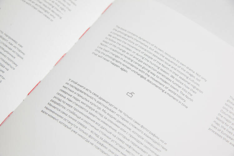 From 2012 to 2014 the photographers Fyodor Telkov and Sergey Poteryaev travelled the regions of North Russia, documenting the lives of the Mansi, Selkup, Nenets and Khanty people. The book tells a complicated story of interactions between the cultures, transformations in the ways of life driven by global processes, relationship with nature and environment, inner belonging and the quest for identity. The sequences of portraits, details of interior, landscapes in the changing seasons capture the atmosphere of one moment in time on the North Line, providing at the same time a unique ethnographic document of life in the region.
