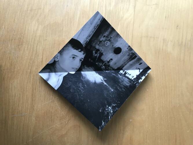 Closed, Triangle of Views forms an equilateral triangle. Open, it is roughly the size of two outstretched hands, placed next to one another, palms facing up. Published by La Chambre Claire, founded by Youcef and Zohor Krache in 2018, it comprises two long-term documentary photo projects by Fethi Sahraoui: Stadiumphilia and Escaping the Heatwave, began in 2015 and 2016 respectively. Sahraoui and Krache belong to Collective 220, a group of photographers who first congregated in room 220 of the Albert the First Hotel in Algiers in 2015 to discuss the need to create and circulate representations of Algeria that escaped stereotypes: the veil, the Kabyle, religious extremism, the migrant, and so-called “underground scenes.