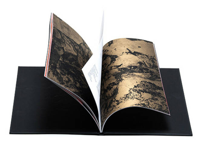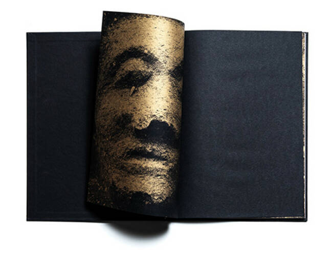 This is why, to this idea of an archaic image, the artist wanted to associate images of female statues found in the Calvaries of Finistère dating from the sixteenth and seventeenth centuries, an opulent time thanks to the linen trade. Processed in the book using gilded print on black paper, opening and closing the work, they are also reminiscent of the origins of Western representation such as Byzantine icons.