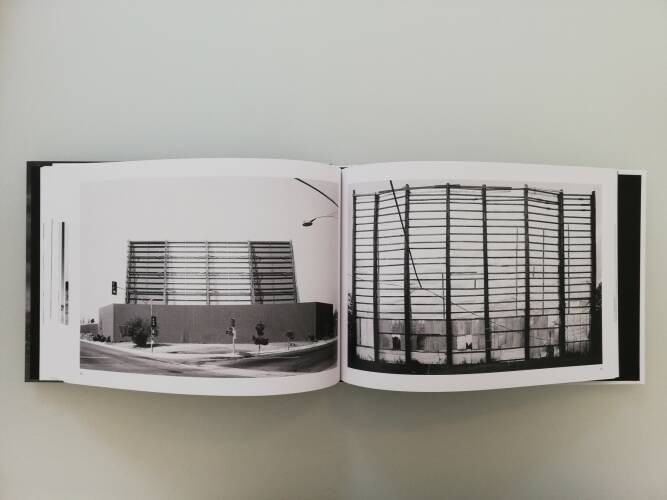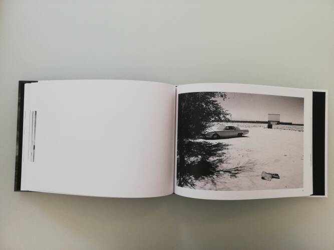 In the 1950s and 1960s, there were some 4,000 drive-ins in the United States. [...] In 1976, left were empty, inhospitable landscapes with strange architectural remains. Huge projection screens and typefaces attached to two poles, such as DRIVE-IN THEATRE or Elko MOTOR-VU or 101 MOVIES, attest to their former function.