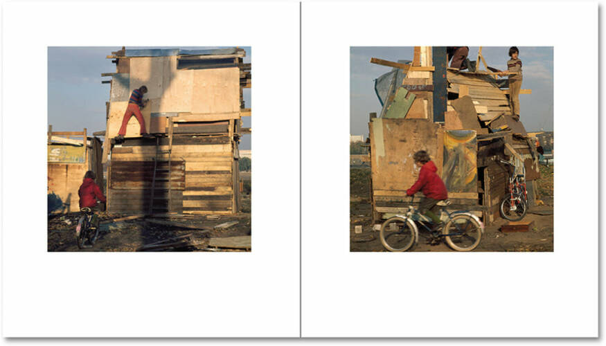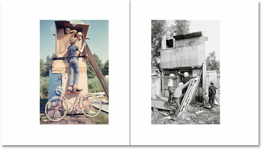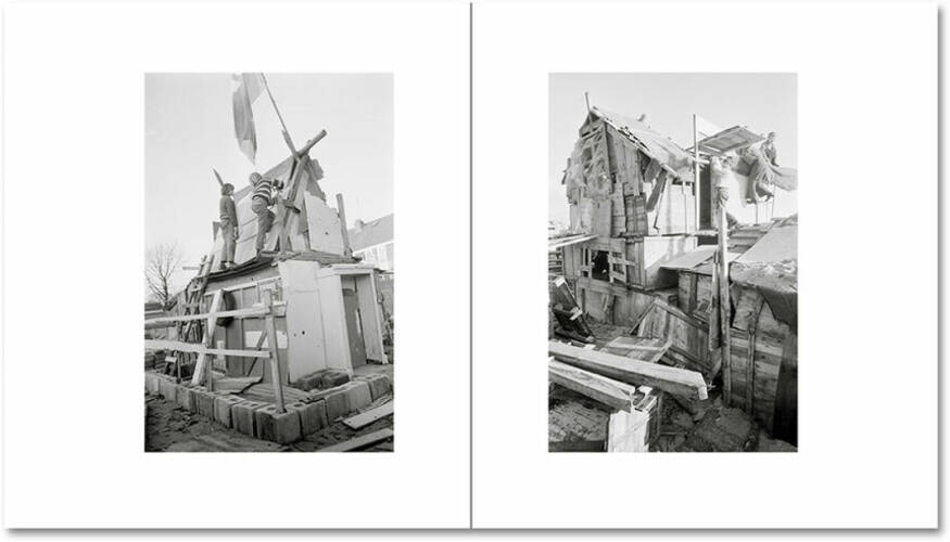 In 1969, when the architectural photographer Ursula Schulz-Dornburg moved to Düsseldorf with her two young children, she discovered Jongensland the other side of the border from Germany’s strictly regulated playgrounds. Fascinated by the improvised buildings where her children would play, she made extensive photographs capturing them being constructed, used, demolished, and reshaped. Her images capture an intuitive architectural intelligence and capture a genre of vernacular construction with its own conventions and innovations, one which illuminates the role of imagination in defining a building’s identity and purpose.